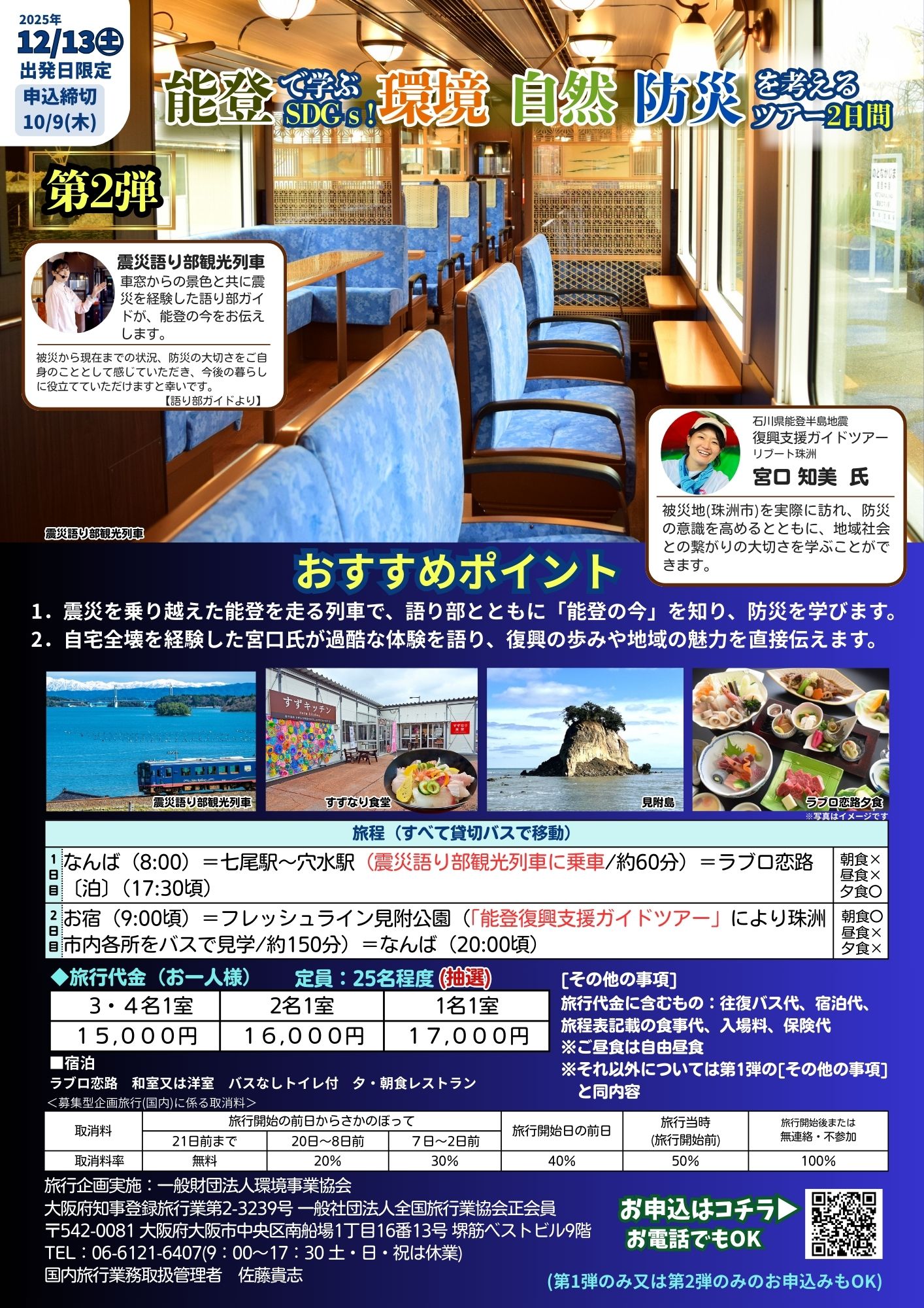 【第2弾】2025年12月13日㊏~14日㊐(1泊2日)場所 【第1弾】石川県七尾市・能登島町・能登町・輪島市