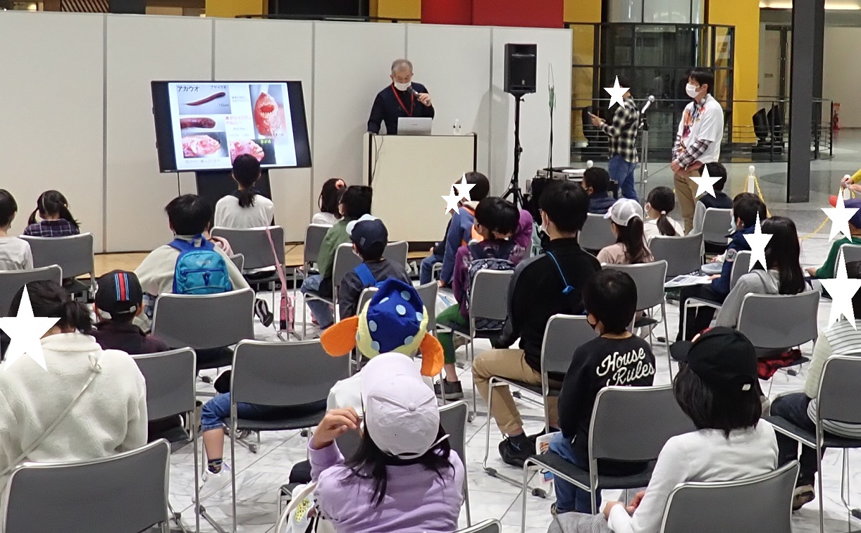 2日間で4回のセミナーを行い、242名の親子にご参加いただきました。20日(土)は大阪市立自然史博物館友の会会長の鍋島 靖信先生を講師にお招きして、「すごいで!大阪産のサカナたち」と題してご講演いただきました。