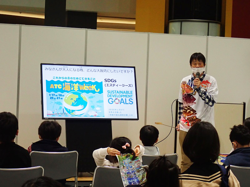 3月20日・21日(日)に大阪市住之江区の大阪南港ATCで開催された「ATC海洋WEEK ~これからの命のためにできること~」のプログラムの一環として、環境事業協会が協力して、大阪産(もん)の魚をテーマにした親子向けセミナー「すごいで!大阪産のサカナたち」・「大阪湾のお魚クイズ!」を行いました。