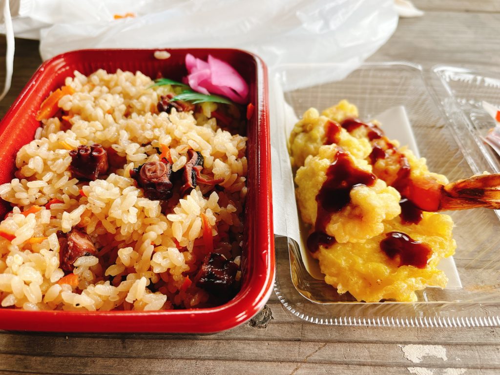 友ヶ島を美しくする会の皆様より、タコ飯の提供とハモ・エビのてんぷらを頂きました!