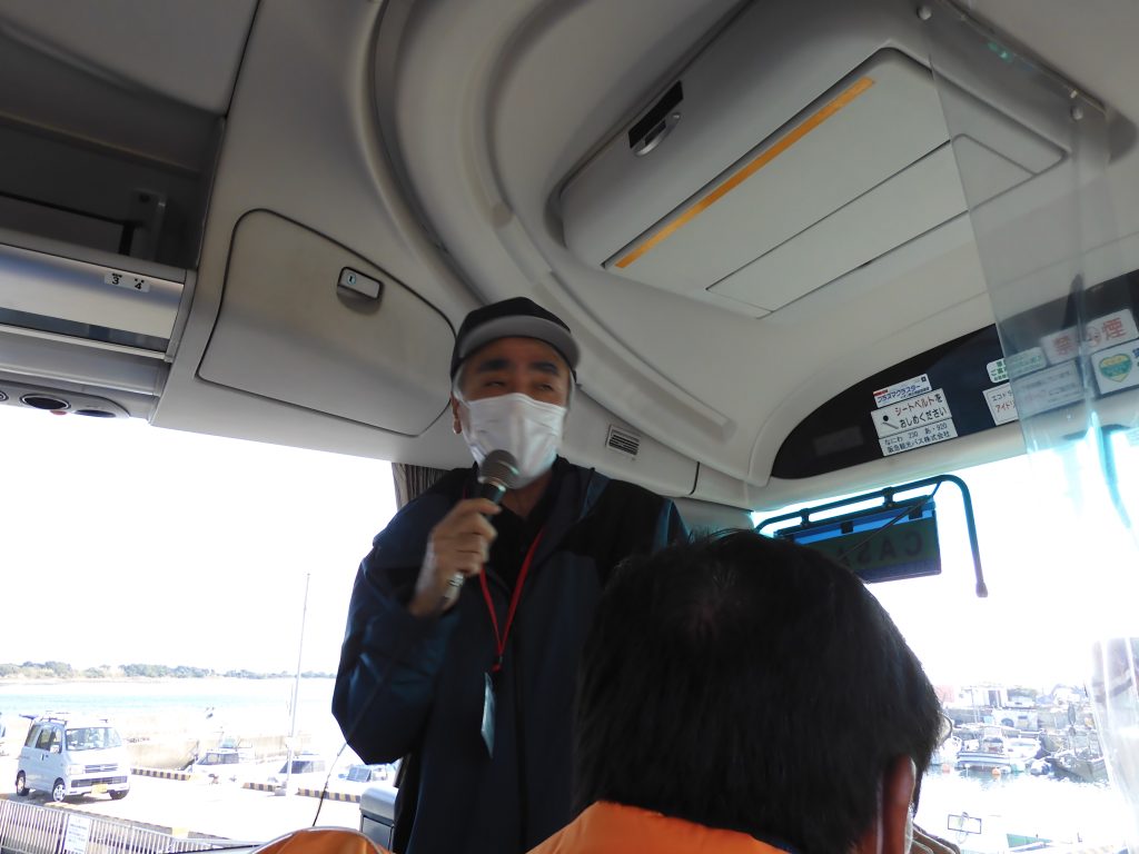 行きのバス内では、CASA理事の宮崎さんが成ヶ島にまつわるクイズを行ってくれました。