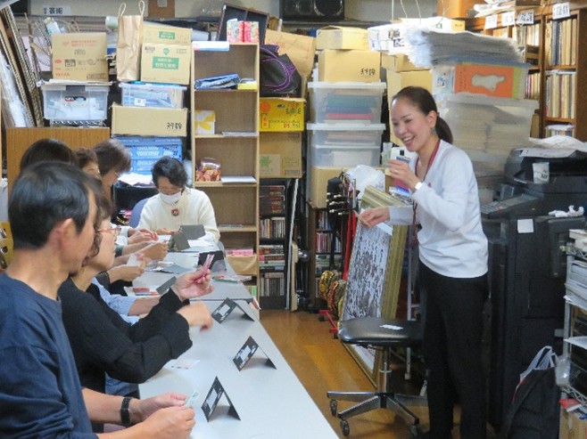シーサーのメッセージカード作りを体験していただき、時間が少し余ったので折り紙の着物ポチ袋作りも体験していただきました。